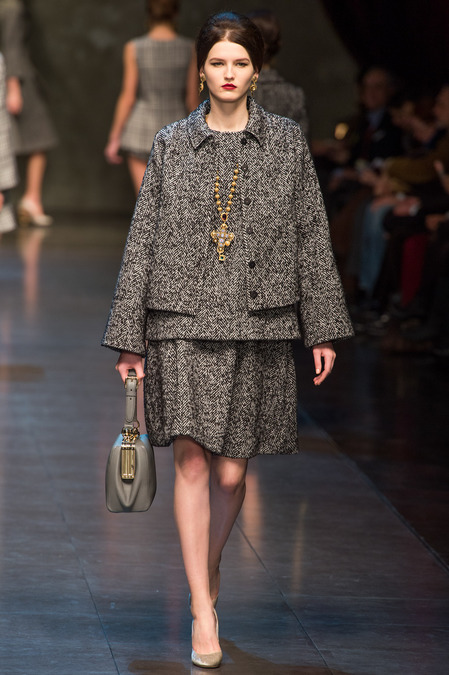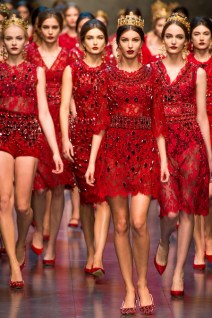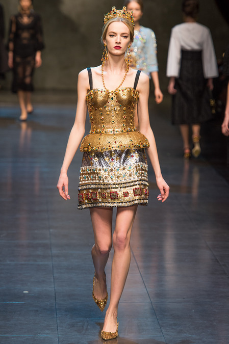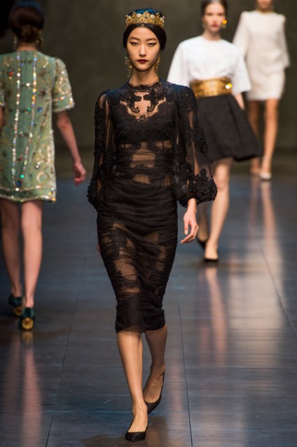 The lace on these is a recurring theme at Dolce, with or without the showing undergarments, it’s innocent and sexy at the same time. The religious earrings and necklaces are amazing.